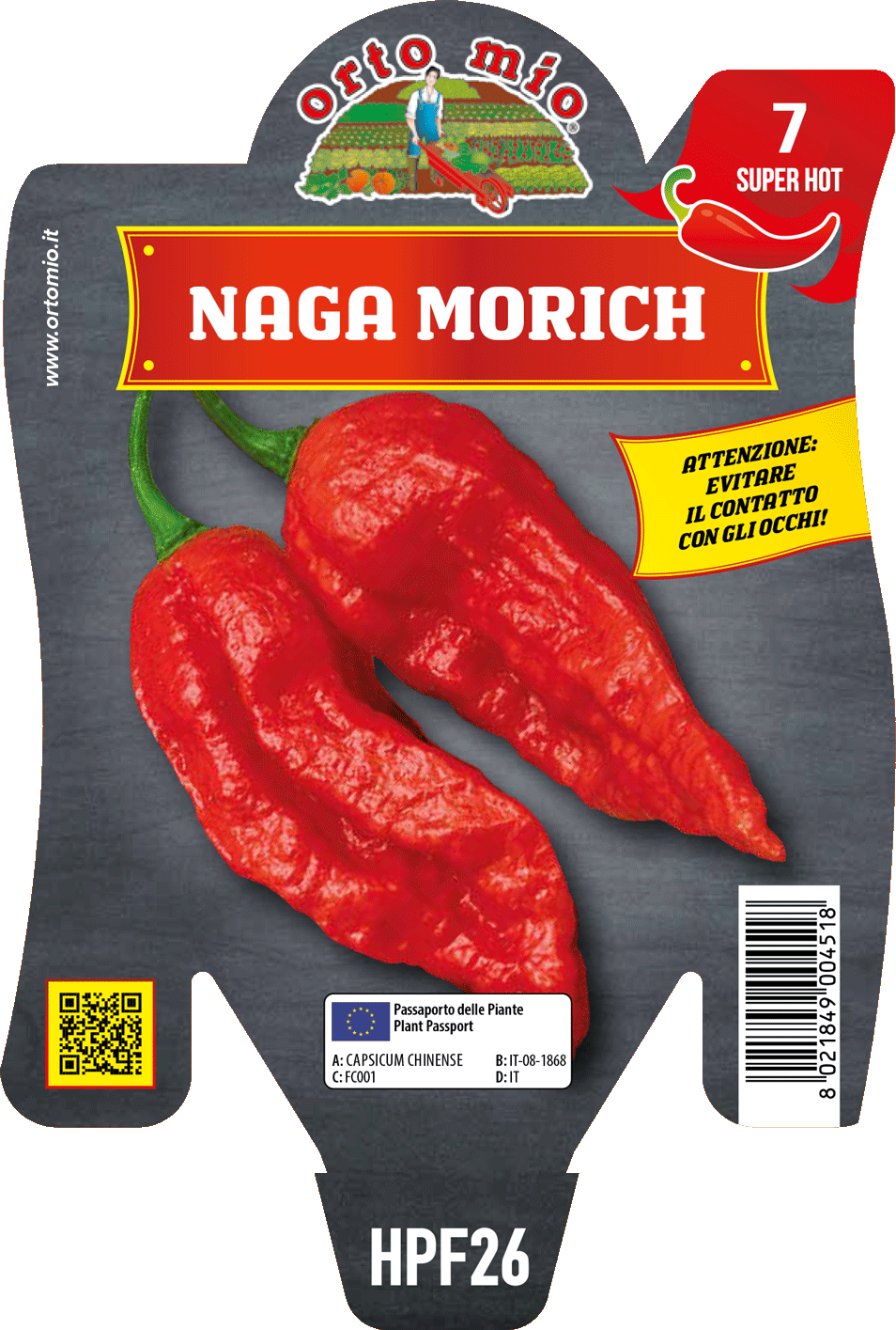 Il Naga Morich è un peperoncino di gradazione 7 originario dell'India, con una piccantezza estrema di ~800.000 SHU. Questo peperoncino è molto apprezzato per la sua intensità e il sapore fruttato persistente.