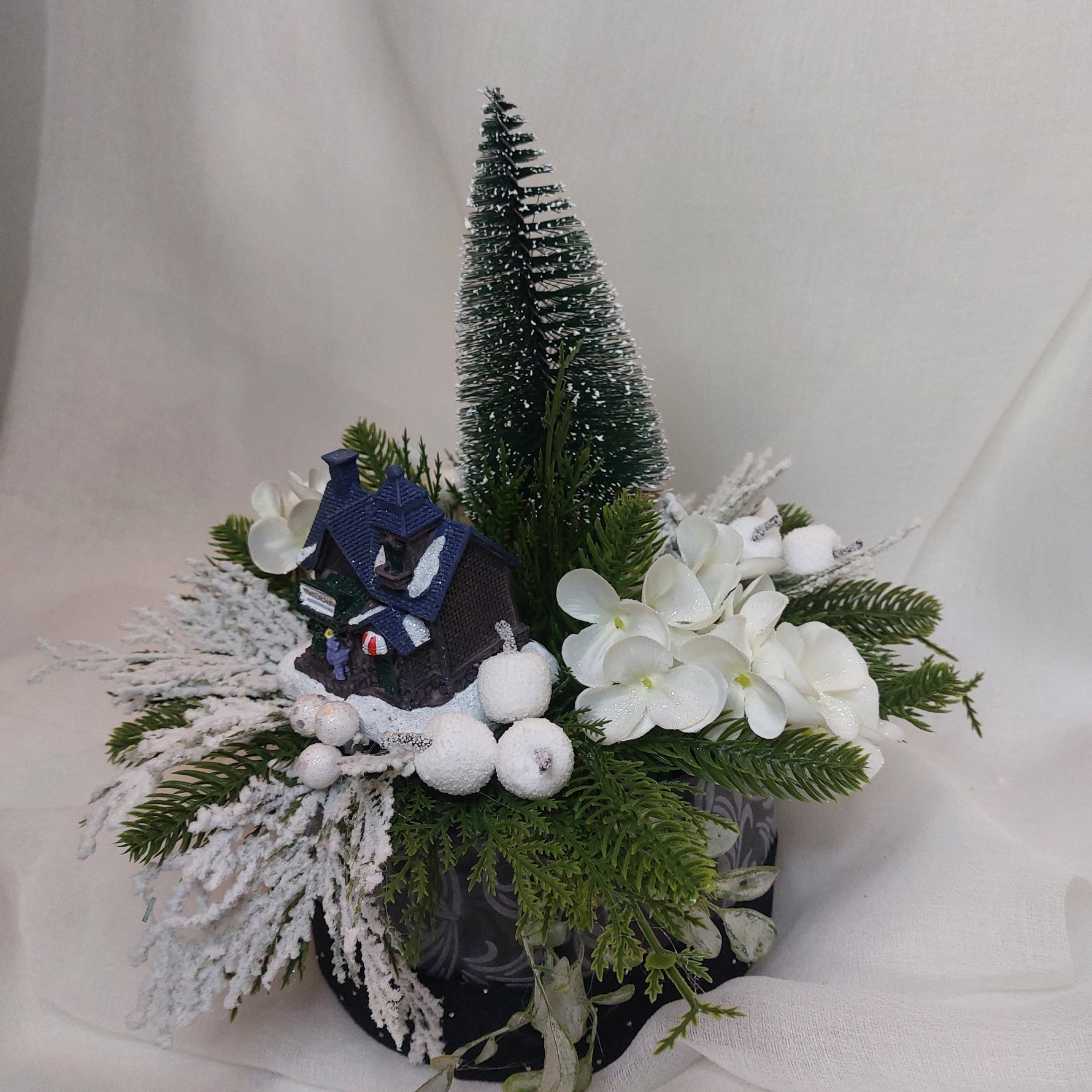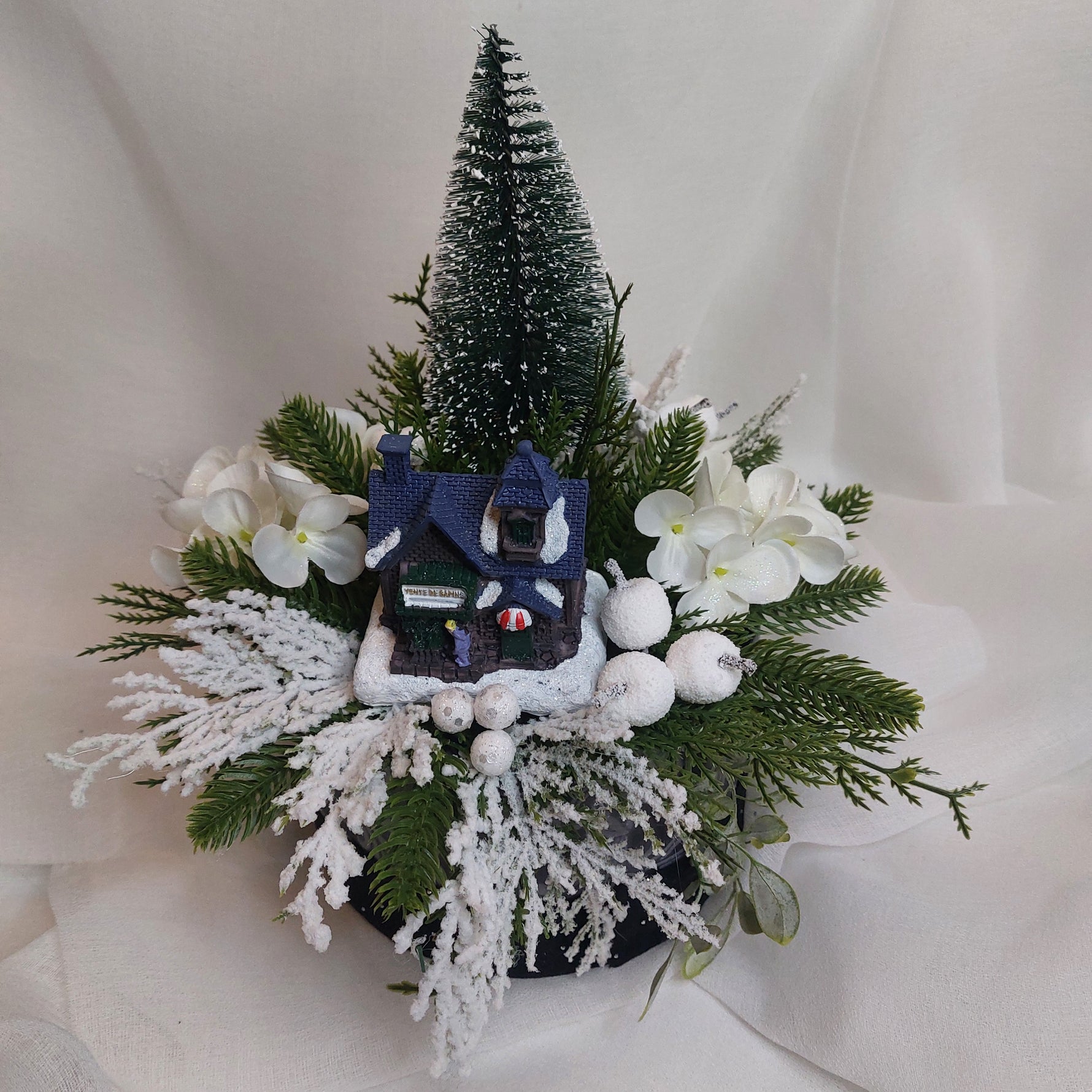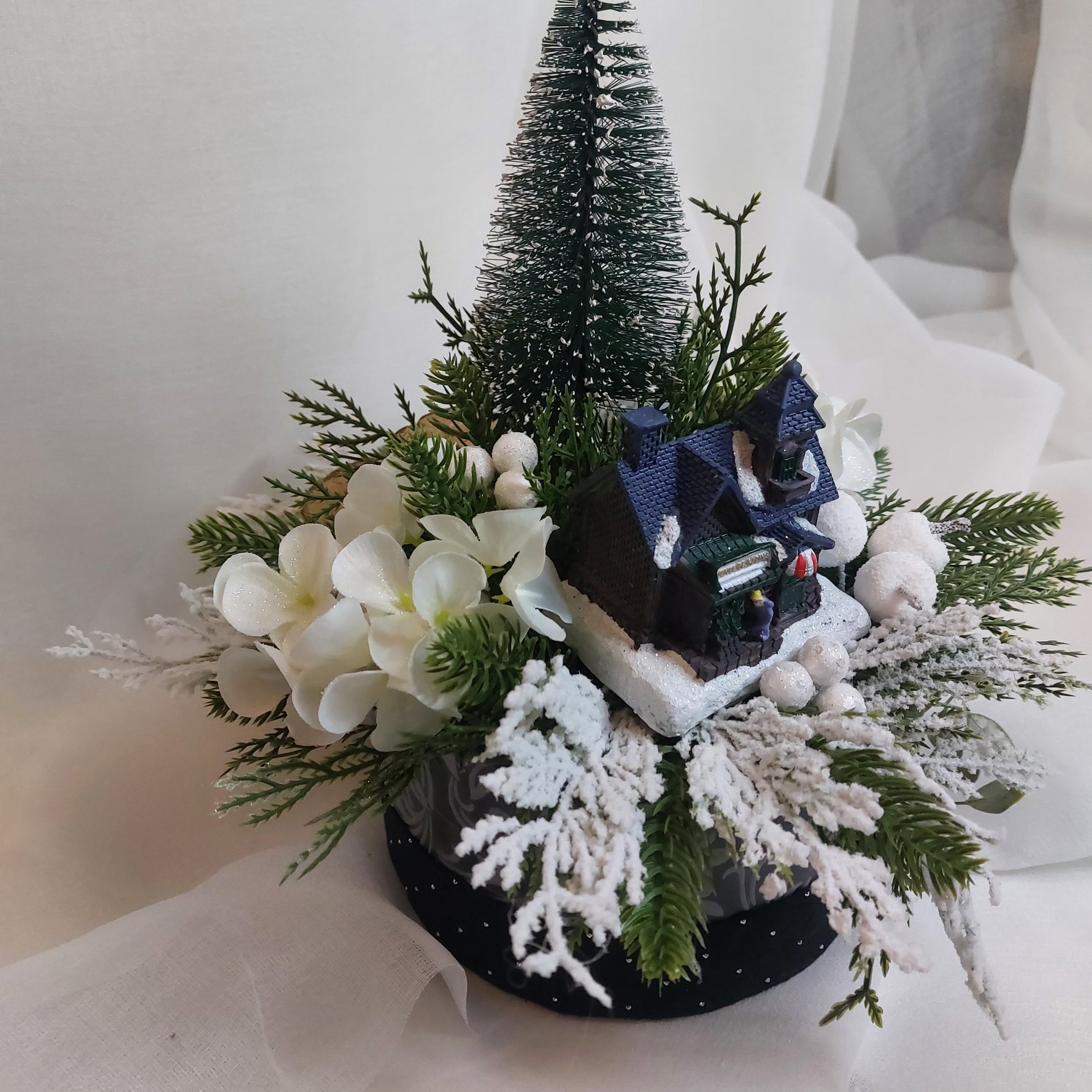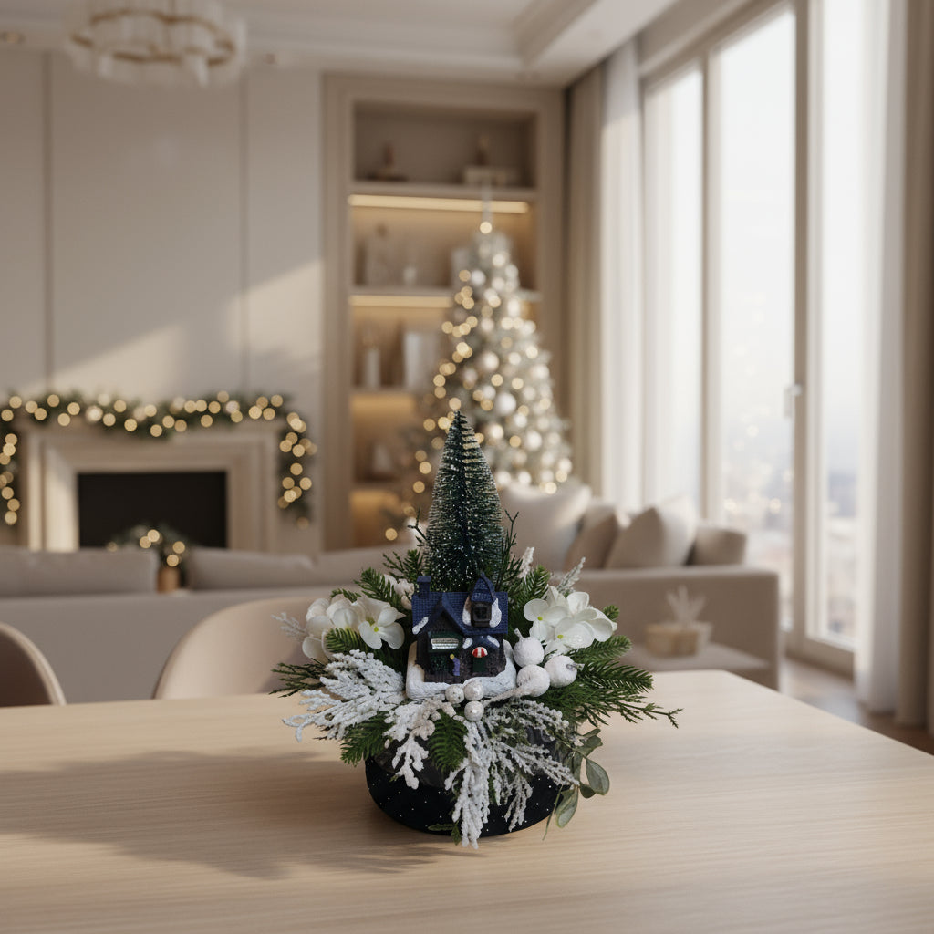 Un centrotavola decorativo che unisce eleganza e calore natalizio. Lasciati incantare dalla bellezza di questo cottage innevato! 🎅❄️