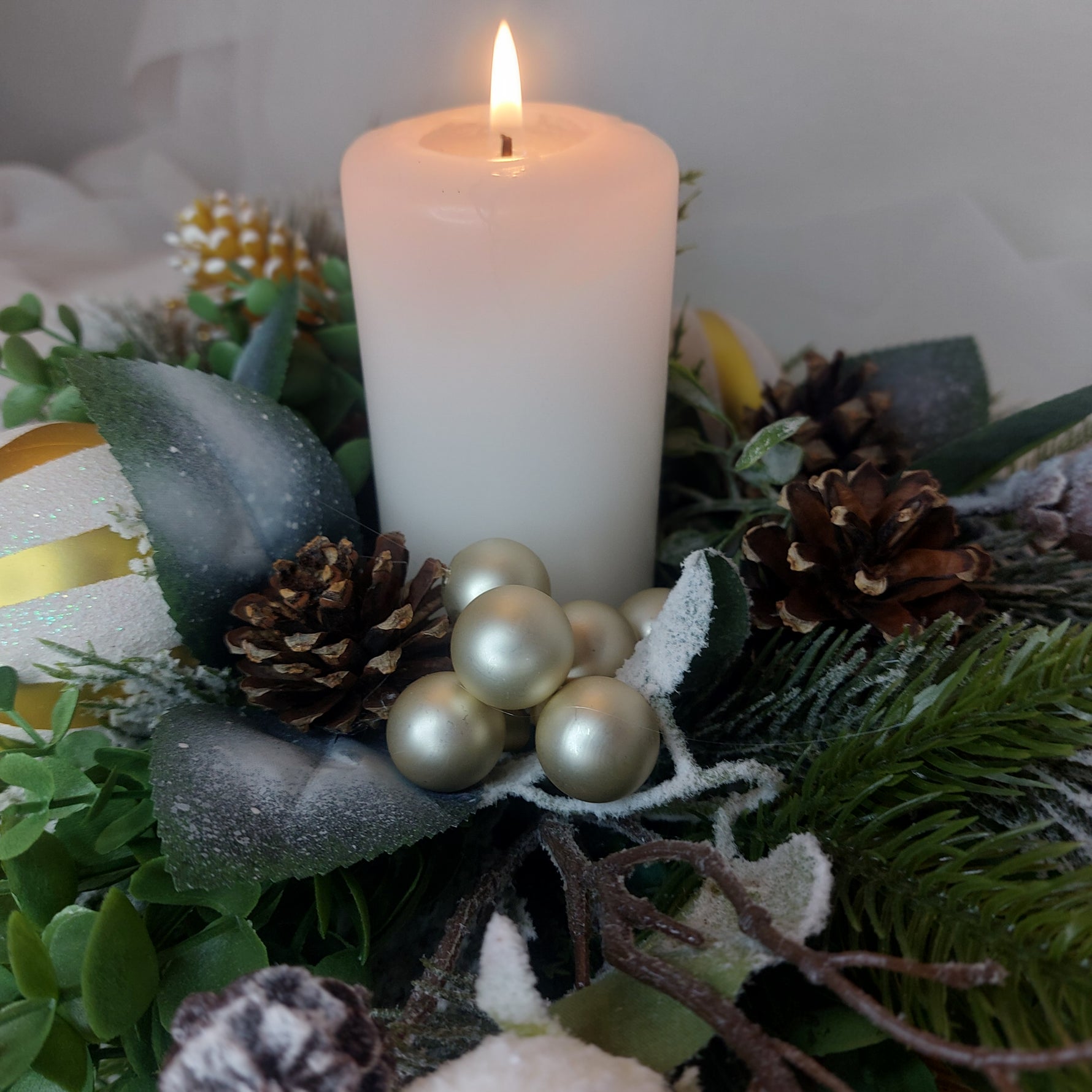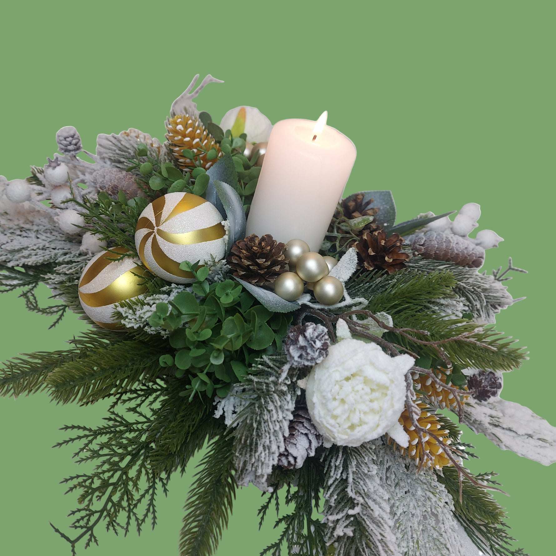 Questo splendido centrotavola decorativo con candela grande è il pezzo che trasformerà la tua casa in un'atmosfera natalizia calda e accogliente. Un design elegante che crea la giusta atmosfera per le tue feste.