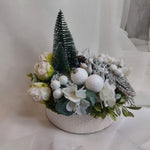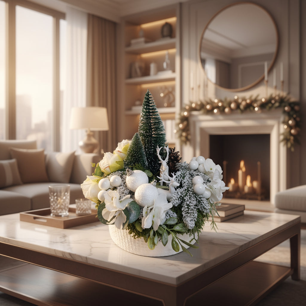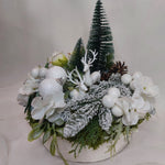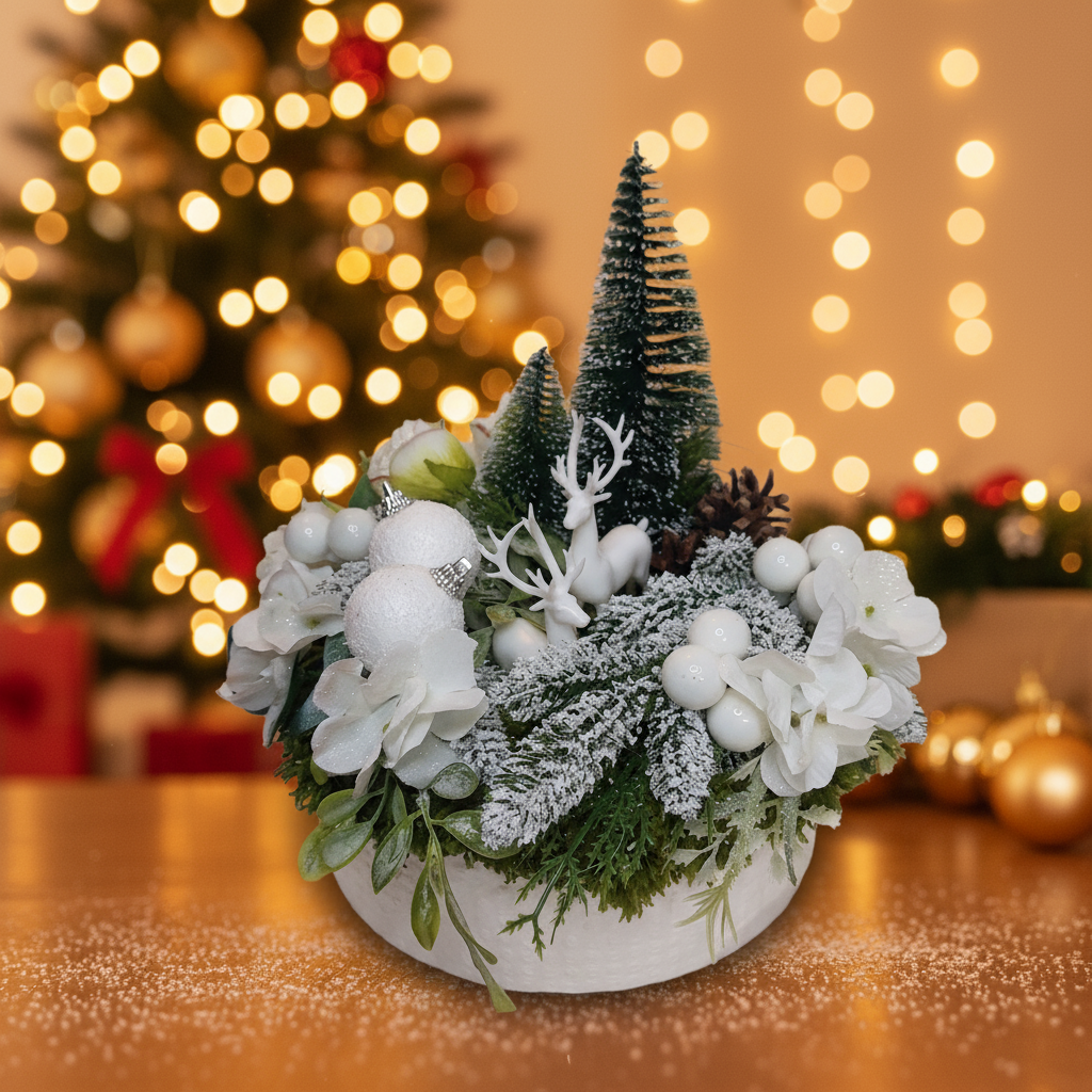 Elegante centrotavola decorativo che ricrea un incantevole paesaggio innevato. Perfetto per arricchire l'atmosfera natalizia della tua casa, questo centrotavola porta la magia dell'inverno direttamente nel tuo ambiente.