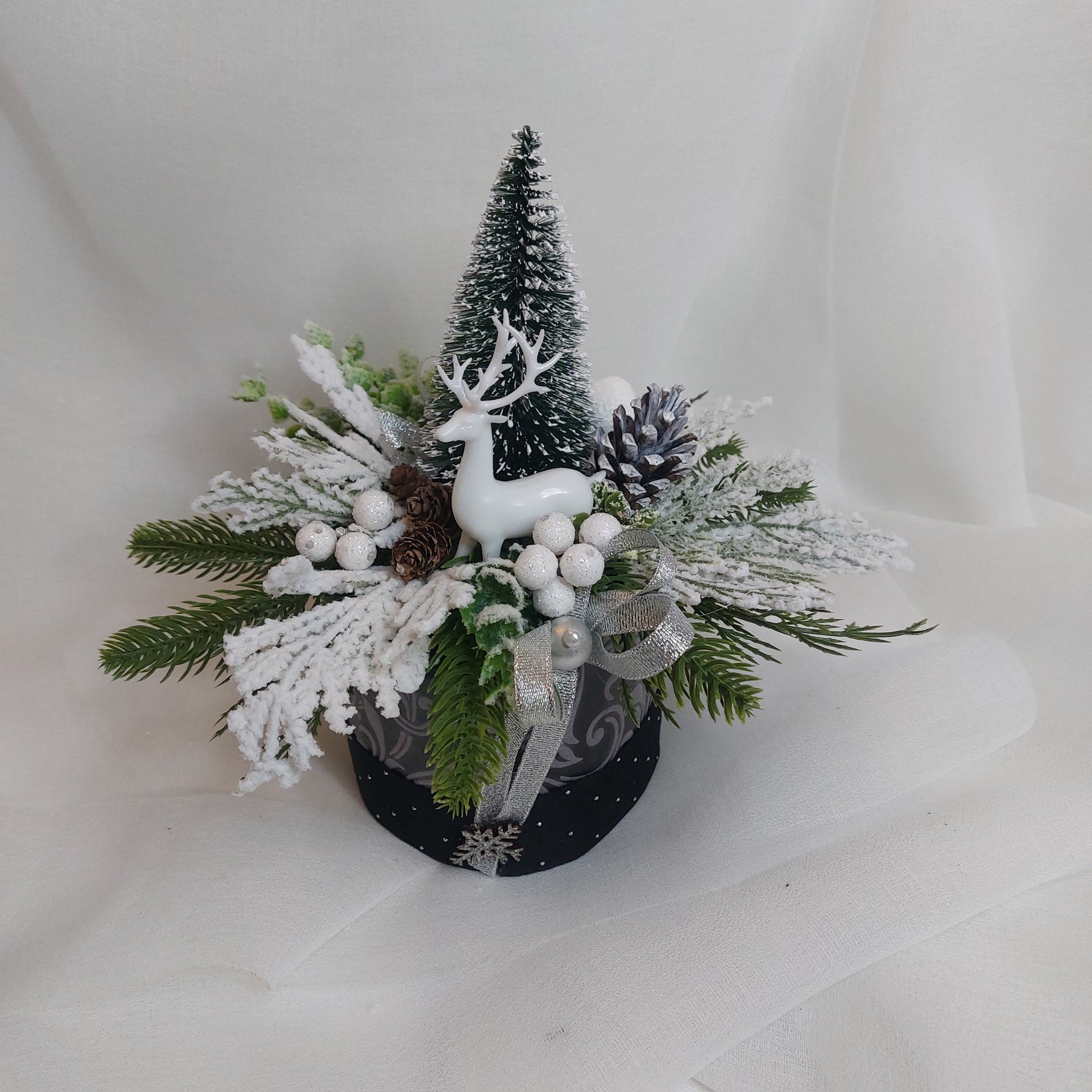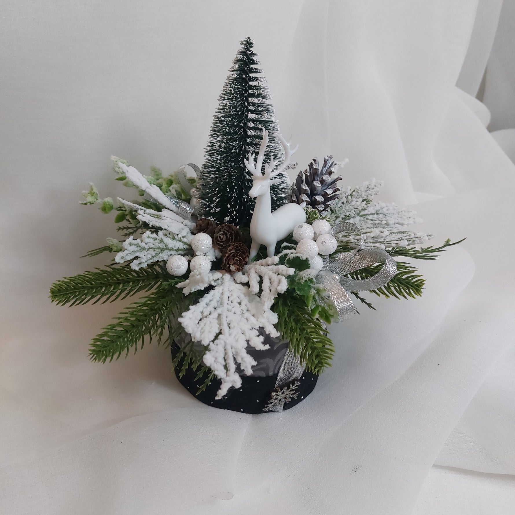 Un centrotavola decorativo compatto ma ricco di fascino, ideale per chi ama l'atmosfera natalizia autentica e i dettagli curati. Lasciati incantare dalla bellezza di questa composizione! 🎅❄️